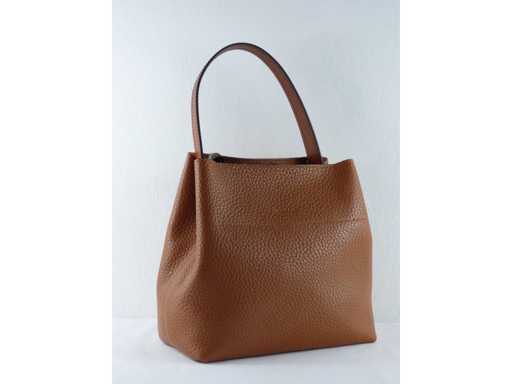 Kožená kabelka v luxusnom a originálnom dizajne. Kabelka sa zatvára na vrchnej časti zipsom . Vo vnútri kabelky je jedno vrecko na zips. Vnútro tašky je podšité textilnou tkaninou so semišovým vzhľadom v oranžovej farbe. Kabelka obsahuje 2 ramienka .Dlhé ramienko sa nastavuje pomocou posúvača a kabelka sa môže nosiť na pleci , alebo krížom ako crossbody kabelka , jeho celková dĺžka je 132cm . Krátke ramienko slúži na nosenie kabelky v ruke i na pleci. Na spodnej časti kabelky sú kovové nožičky, ktoré slúžia proti odretiu kože. Vo vnútri kabelky je pásik s nitom pomocou ktorého si kabelku stiahnete . Jednoduchá netuctová kabelka ktorá očarí každú ženu.