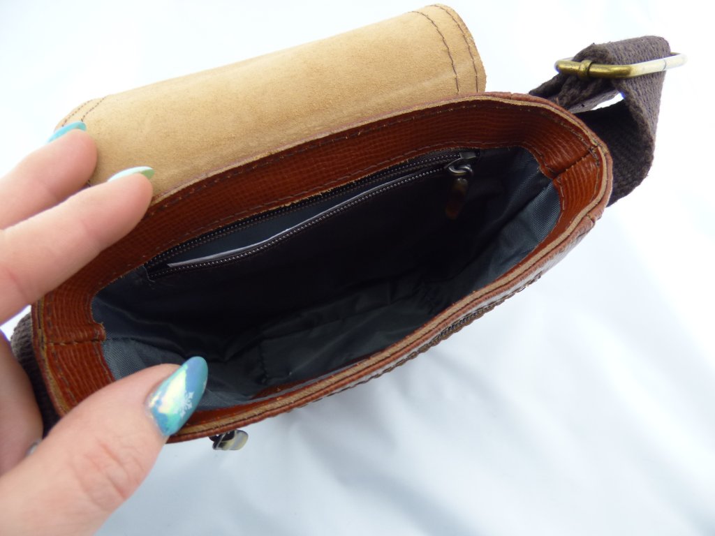 Kožená crossbody taška vo vysokej kvalite. Taška s poklopom so zapínaním na cvok pod ktorým je vrecko na zips, má vnútorné vrecko na zips plus na mobil a vonkajšie vrecko na zips. Popruh je možné ľubovoľne nastaviť.