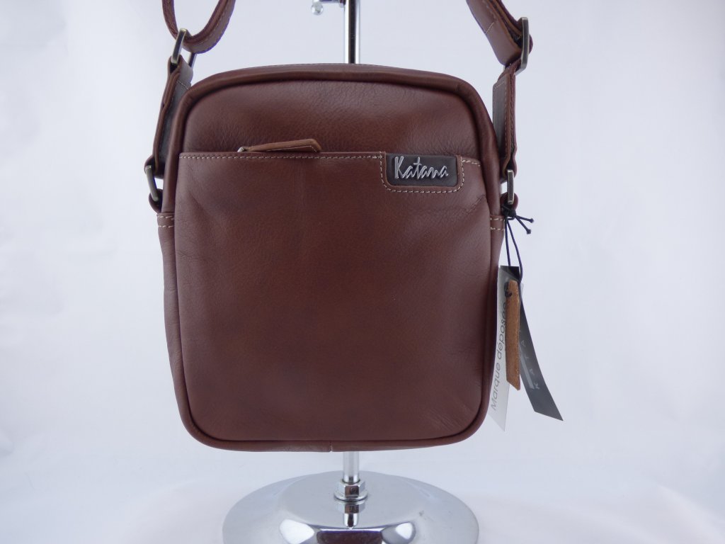 Pánska crossbody taška vyrobená z kvalitnej kože. Na prednej strane tašky sa nachádza vrecko uzatvárateľné zipsom, takisto aj na zadnej strane sa nachádza také isté vrecko, len bez zipsu. Vo vnútri tašky sa nachádza vrecko na zips a vrecko na mobilný telefón. Vnútro tašky je podšité kvalitnou látkou s potlačou značky KATANA. Kvalitný nastaviteľný popruh v kombinácii nylon a koža.