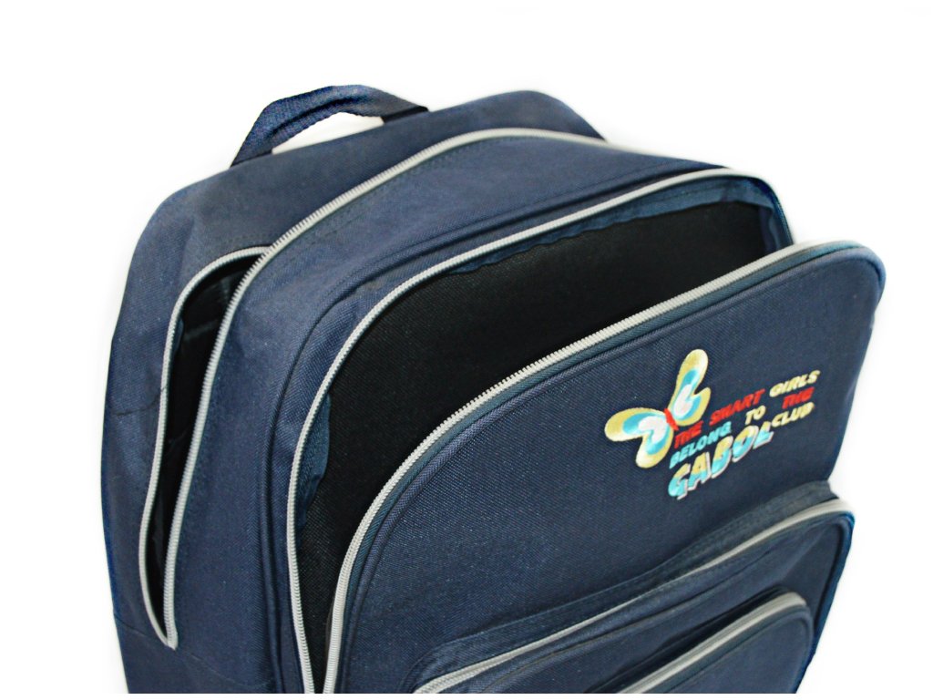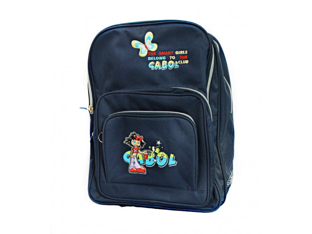 Jednoduchý dvojkomorový školský batoh s dvoma malými prednými vreckami.