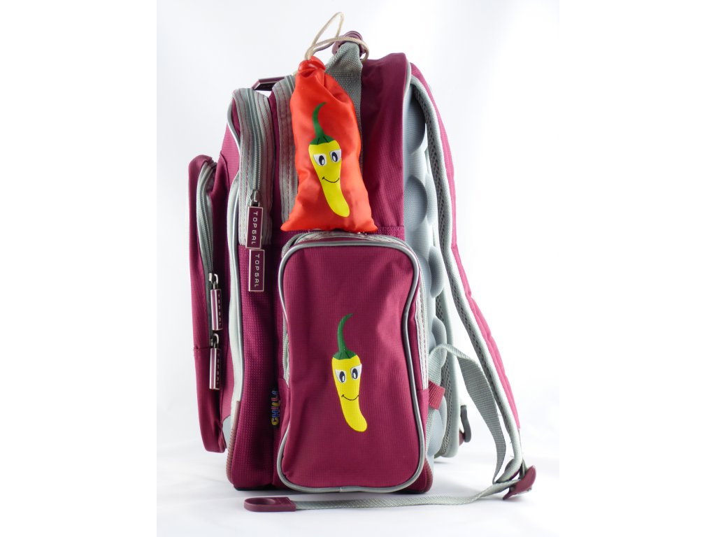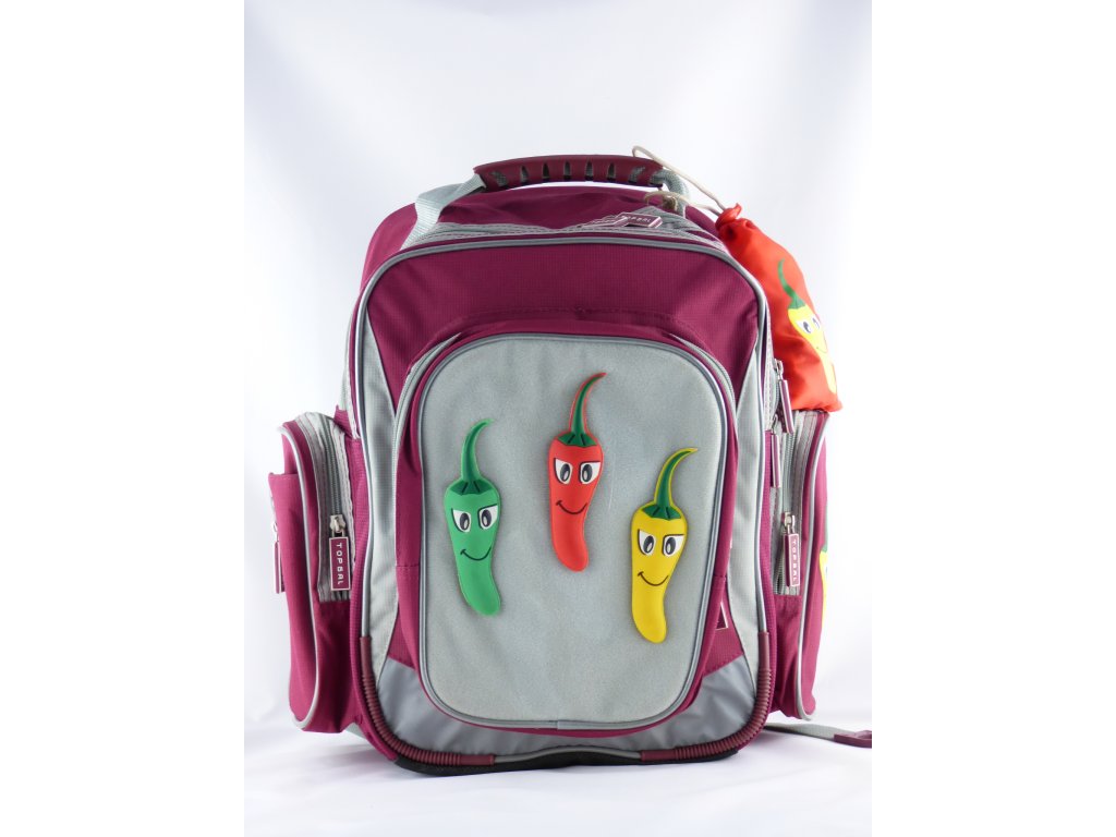 Vak má dve hlavné priehradky uzatvárateľné zipsom, dve bočné vrecká + vrecko na fľašu, predné vrecko uzatvárateľné zipsom. Chrbát vaku je ergonimicky vystužený. Farebné papričky sú na suchý zips, takže sa dajú bez problémov odopnúť. Vak má reflexné prvky + reflexné lemovanie. Spodná strana vaku je pogumovaná + zosilnené okraje proti oškretiu.